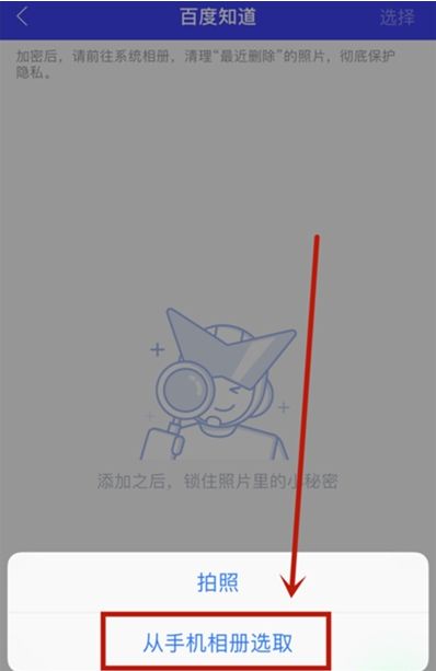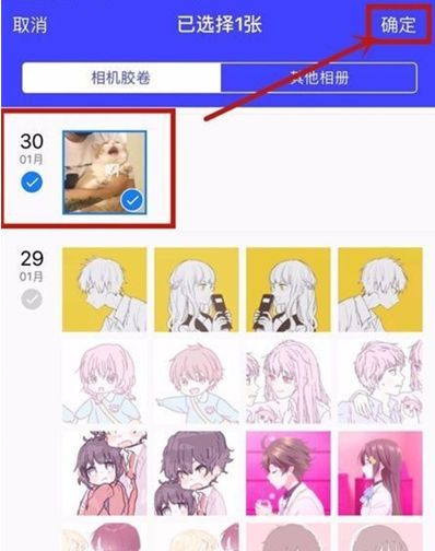 6、在【手机相册】中选择想要进行加密的【单张照片】或【整个相册】后,点击顶部右侧的【确定】进行添加。
